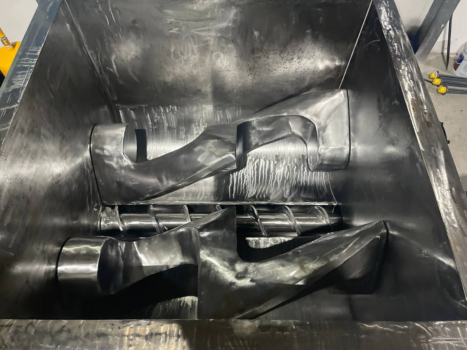 Blade Design: Features dual Sigma (Σ) type mixing blades, specifically engineered for high-shear, intensive mixing of extremely viscous materials. This unique design ensures maximum material contact, superior kneading action, and homogenous blending, even with dense and cohesive substances like asphalt shingles.